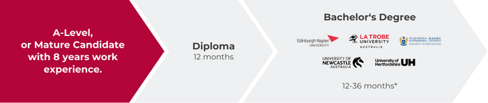 Choose to study part-time and enjoy a flexible mix of online and in-person learning, or opt for a 100% online diploma. Upon completion, you can choose to further your studies with a degree from our university partners.*